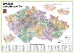Nástěnná mapa České republiky zobrazuje aktuální stav správního uspořádání s vyznačením hranic krajských a hranic správních obvodů obcí III. a…