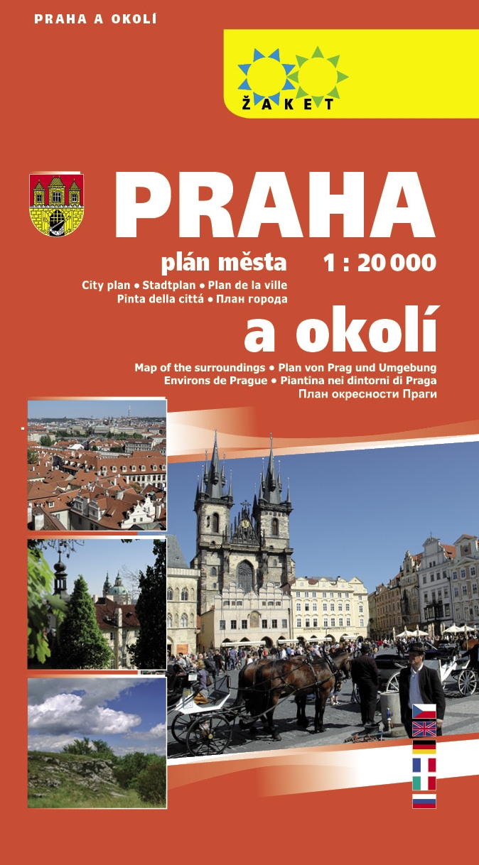 Aktualizované vydání rozkládacího plánu Prahy 1 : 20 000 se silniční mapou okolí Prahy v měřítku 1 : 190 000. Součástí plánu města je i detailní mapa centra s vyznačenými památkami, vlepený rejstřík ulic a průjezdní plán Prahy. Kartonová obálka.